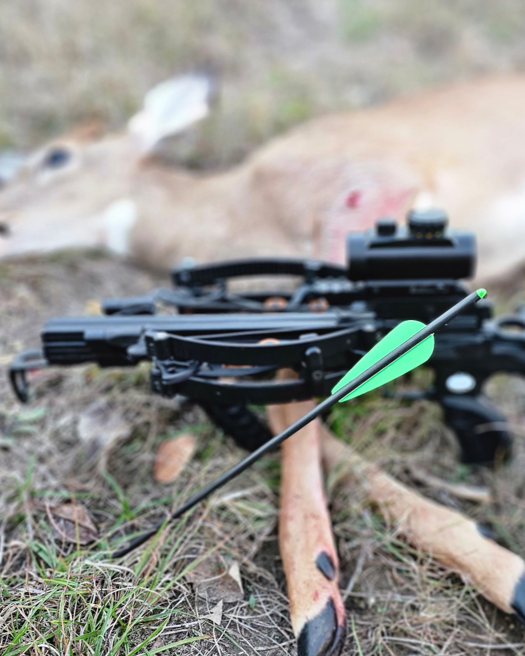 This bolt is heavier and made specially for hunting large game, such as deer or hogs. It will accept any standard field tip or broadhead.