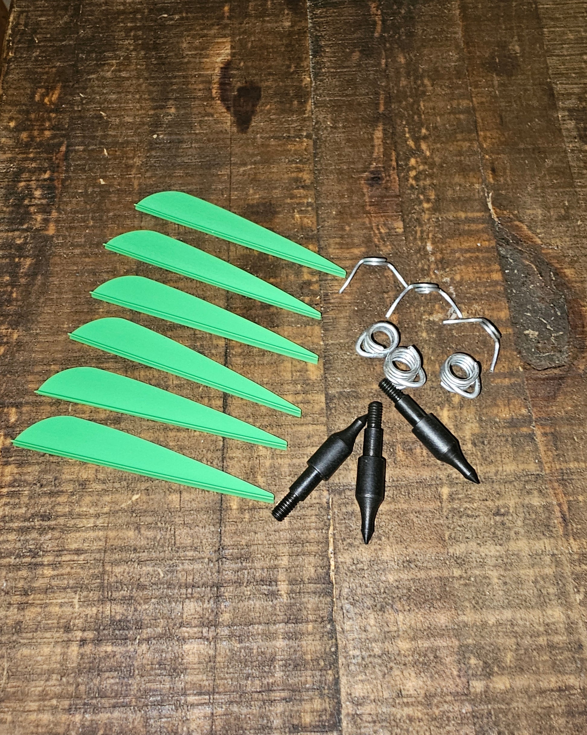 With this kit you can turn you old bolts into fishing bolts. Just take off the existing vanes, put the slide on the shaft and re-fletch the bolt with the replacement vanes. Put the wire fish stop over a field tip, screw the field tip into the bolt and it's done.