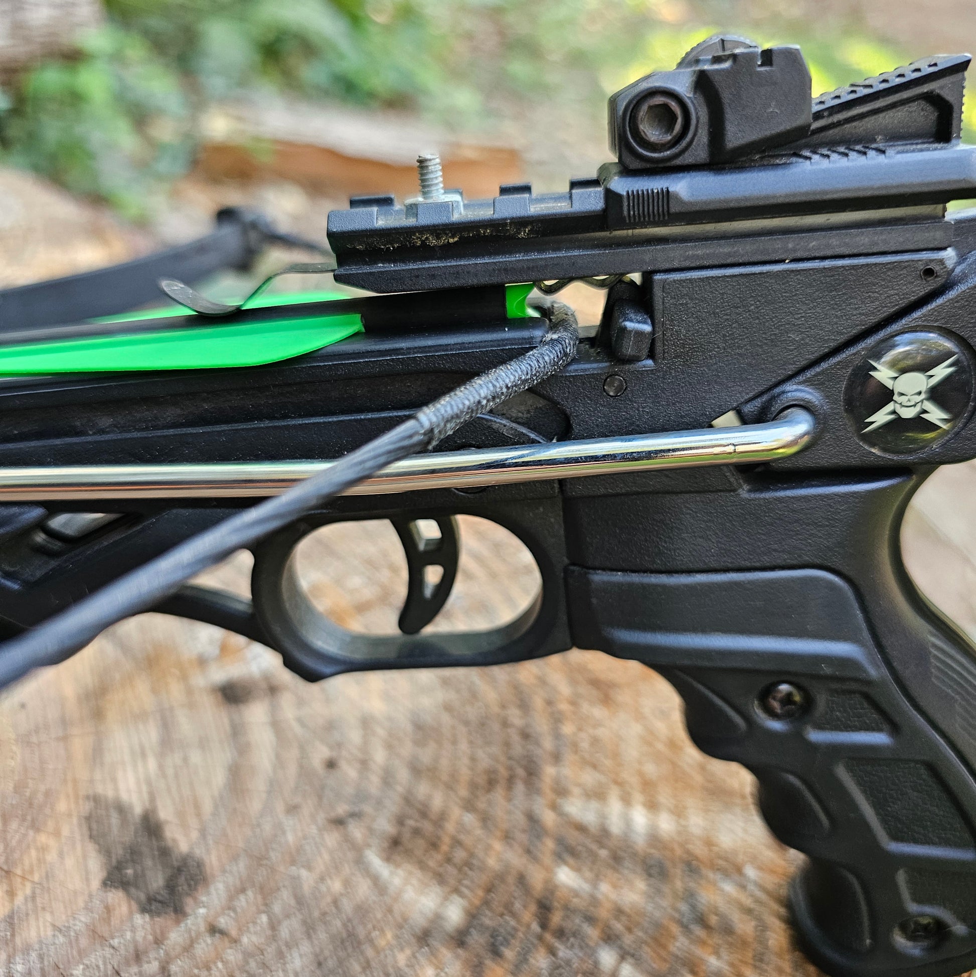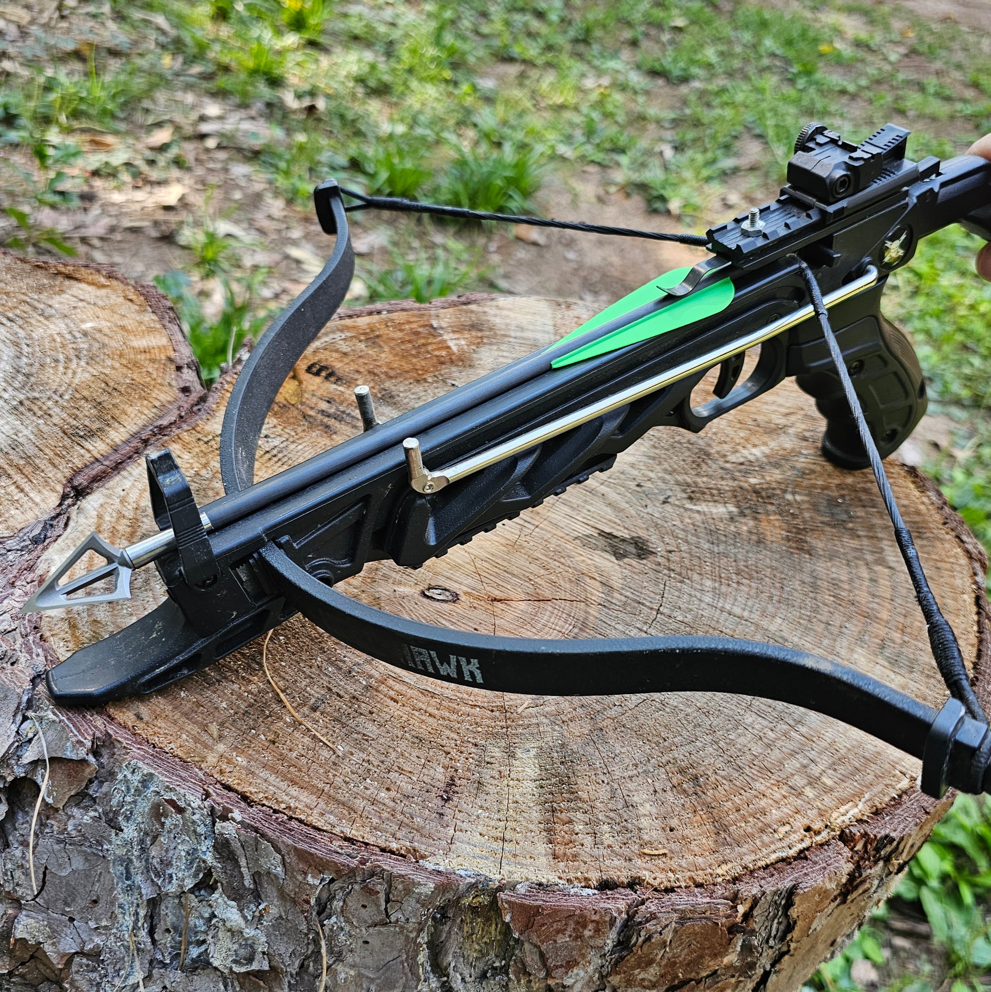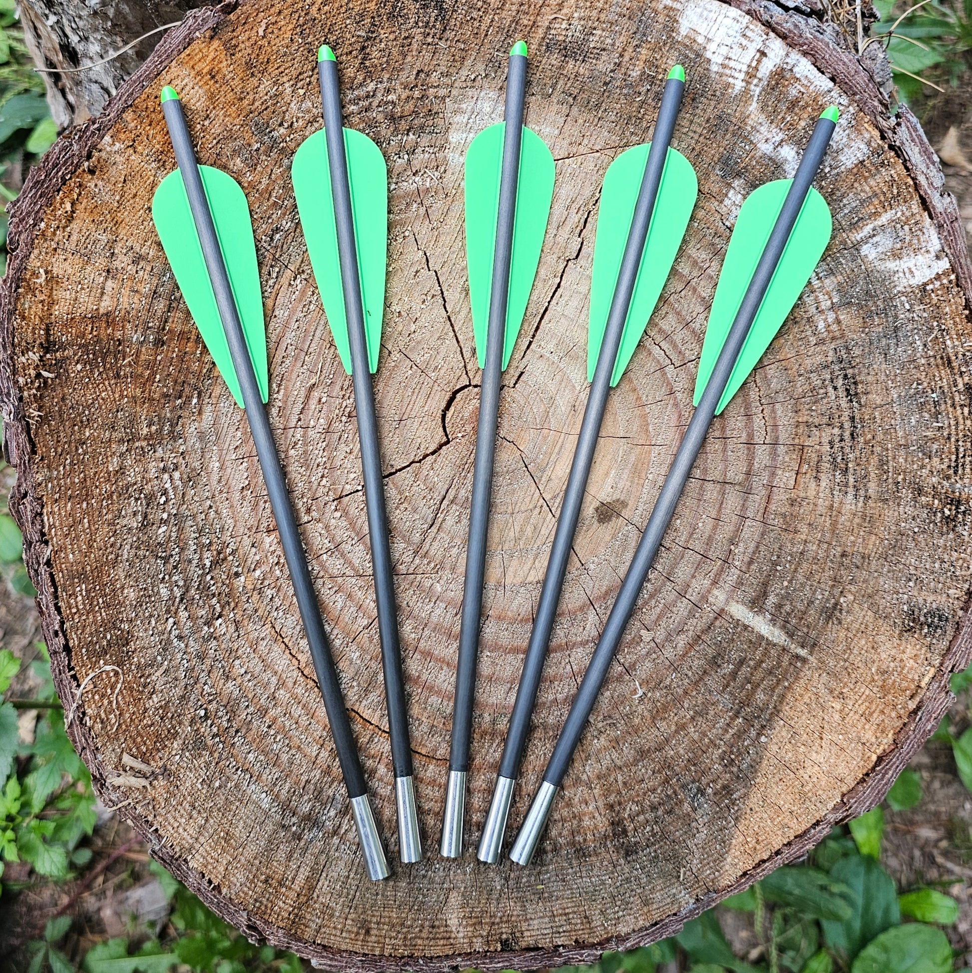 These 9.75 inch carbon bolts have a stainless steel insert for increased weight. Weighing in at 205 grains each and capable of accepting any standard broadhead they're one of the only real options for larger game when it comes to the 80lb mini crossbows.