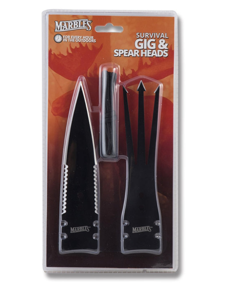 The Marble's gig and spear heads are portable, reuseable and fit easily into your rucksack, pack or survival kit. They can be used for most hunting, spearing, trapping and even skinning. They're the perfect tool for the survivalist and outdoorsman.