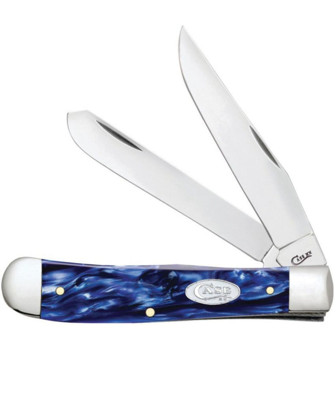 10254 SS pattern. 4.13" closed. Mirror finish stainless clip and spey blades. Sparxx blue Kirinite handle. Nickel silver bolster(s). Inlay shield.
